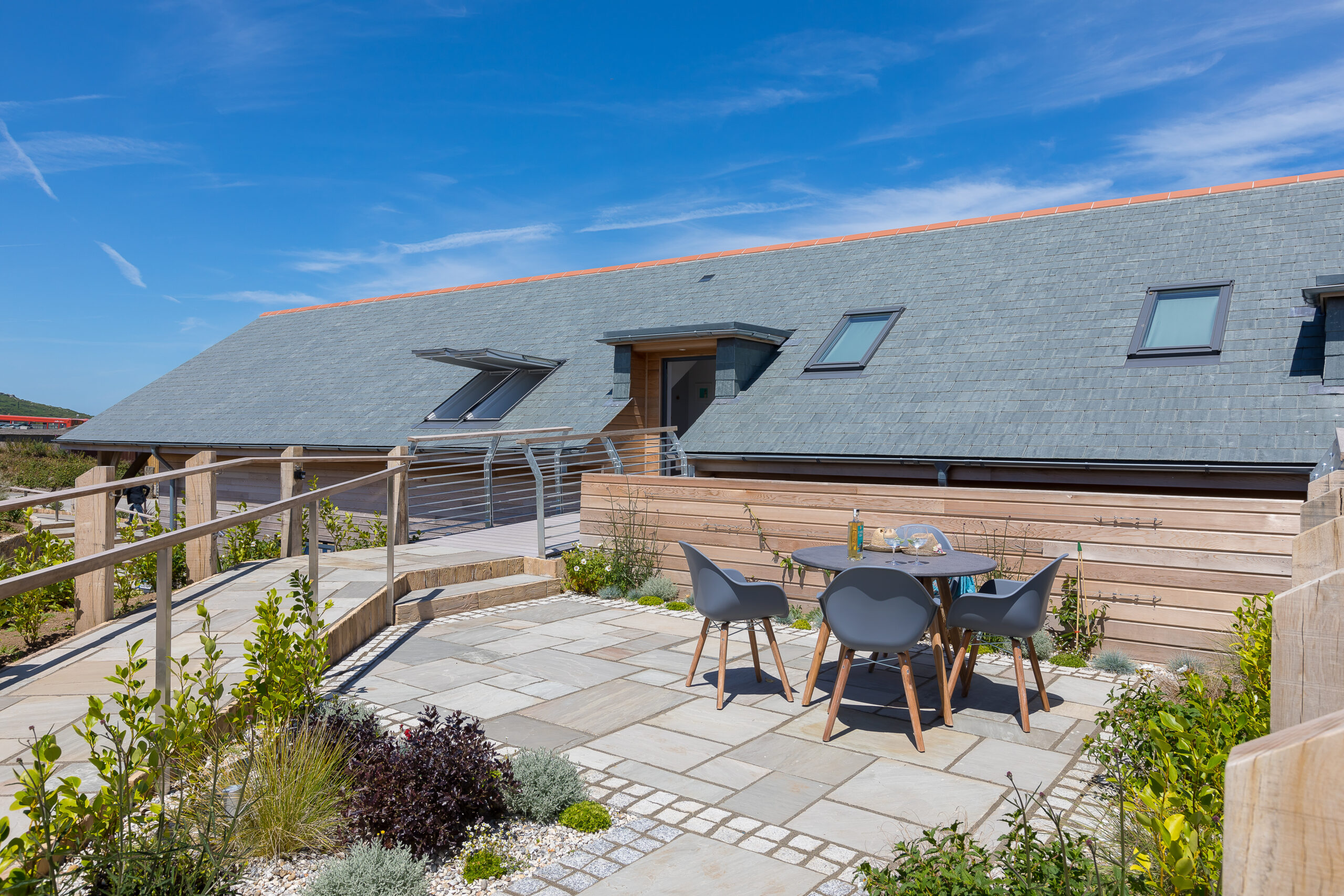 Ramped access to the apartment and patio, with accessible features in the property suitable for part-time wheelchair users