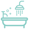 Freestanding bath and shower, which do not have rails. A shower stool can be provided on request. April to October, apartment guests can use the wet room in the amenity block opposite the apartment for showering, if required.